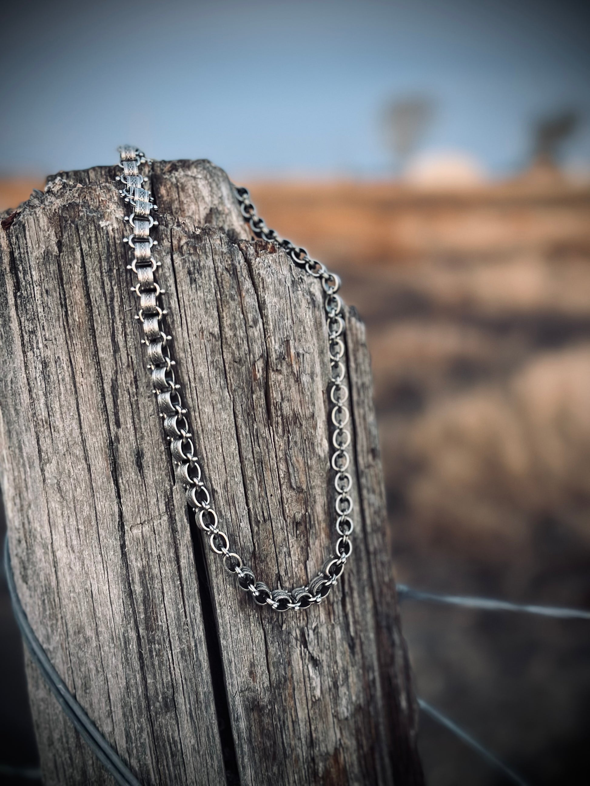 Hypoallergenic brass core with a sterling silver extension for adjustable 17–20” wear.