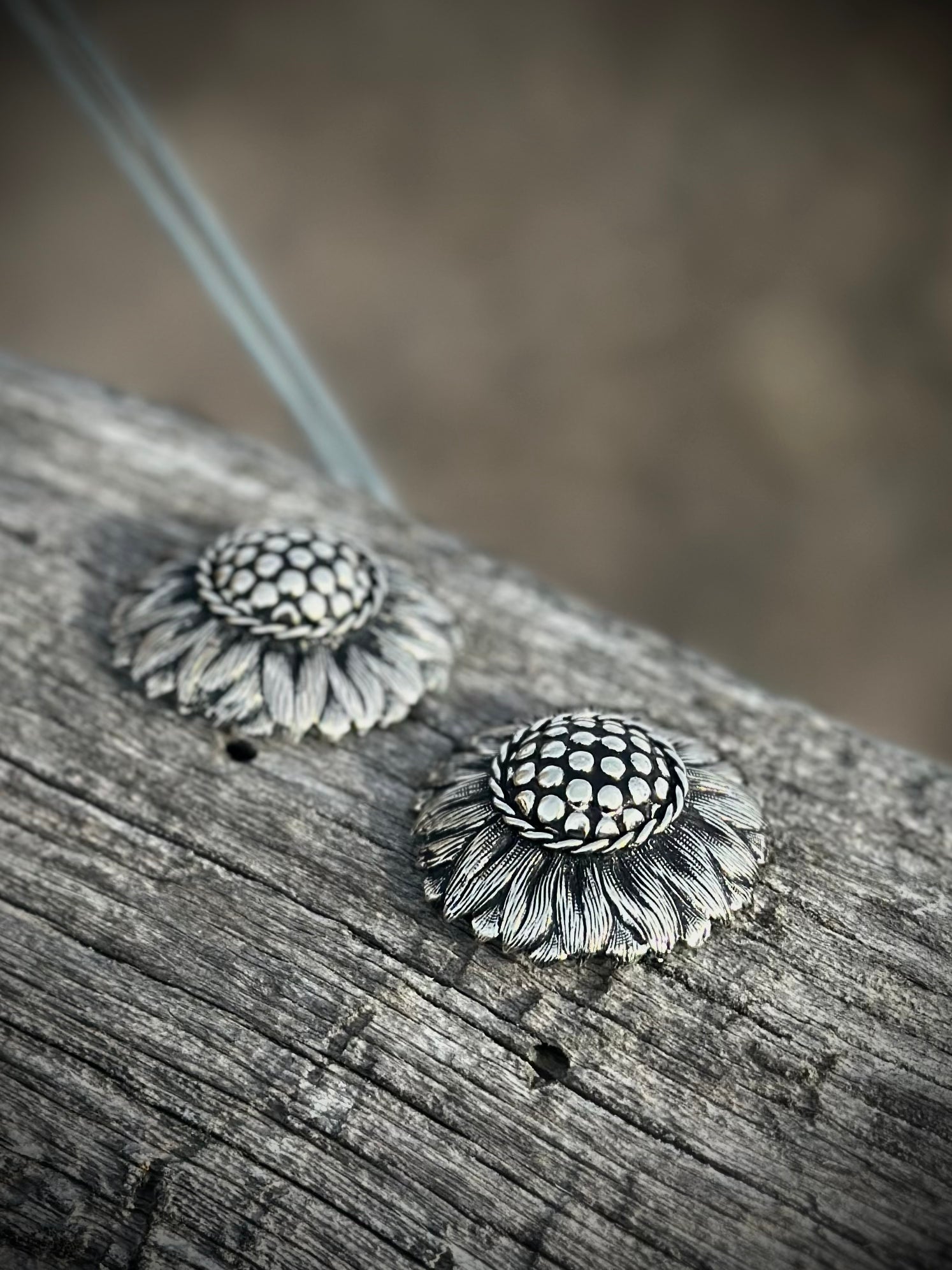 Each sunflower loop back concho is crafted in cast white bronze using hand-engraved originals made right here in my shop.